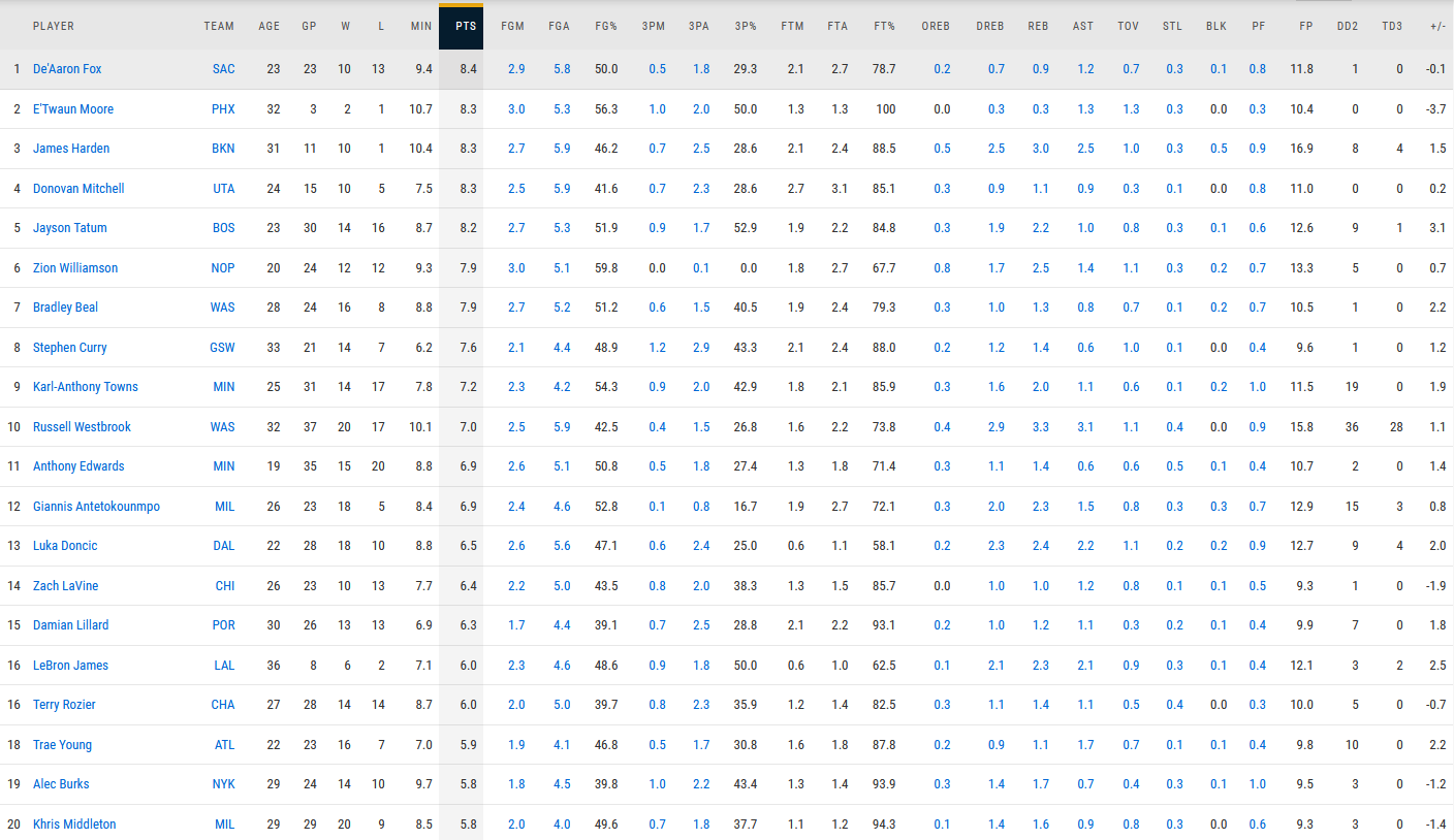 Über die gesamte Saison hinweg schafften genau neun Spieler einen Schnitt von 24+ Punkten bei 50+% Wurfquote: Auch hier kann man getrost von elitärer Gesellschaft sprechen.
