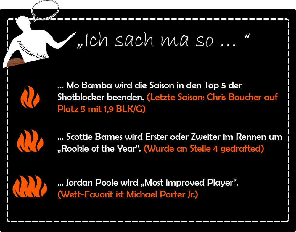 Die Magic würden sich über eine Baustelle weniger freuen und als Zuschauer sind Comeback-Geschichten wie die von Tyler Herro, Jordan Poole und Mo Bamba gefundenes Fressen am Narrativ-Buffet der NBA. Auch den Neulingen drückt man natürlich die Daumen – auch, wenn sie am Ende nicht alles von dem einhalten können, das sich phantasievolle Fans aufgrund einiger Pre-Season-Highlights ausmalen …